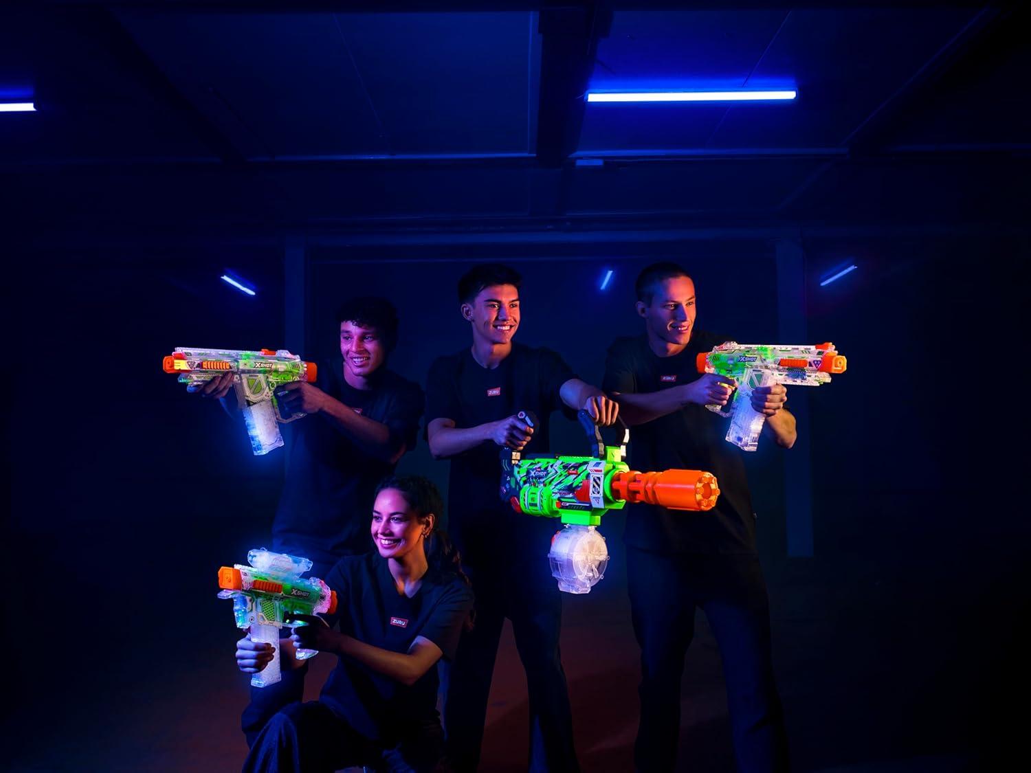 It's time to get hyped up with XSHOT Hyper Gel Glow in the Dark! XSHOT Hyper Gel Glow In The Dark NightStrike can blast Hyper Gel Pellets at 170 feet per second with its motorized fully and semi automatic modes. Battle all night long with the NightStike's Glow in the Dark technology, and Glow in the Dark Gel Pellets, which will push your blaster battles to the NEXT LEVEL! The NightStrike has a 600 Pellet capacity hopper, when you run out of Gel Pellets simply flip your blaster to reload from the 850 Pellet capacity mag. This motorized Gel Blaster comes with a rechargeable battery. Stocked with 5,000 Glow in the Dark Hyper Gel Pellets and protective eyewear, just add water to start the ultimate Gel Blaster battle!