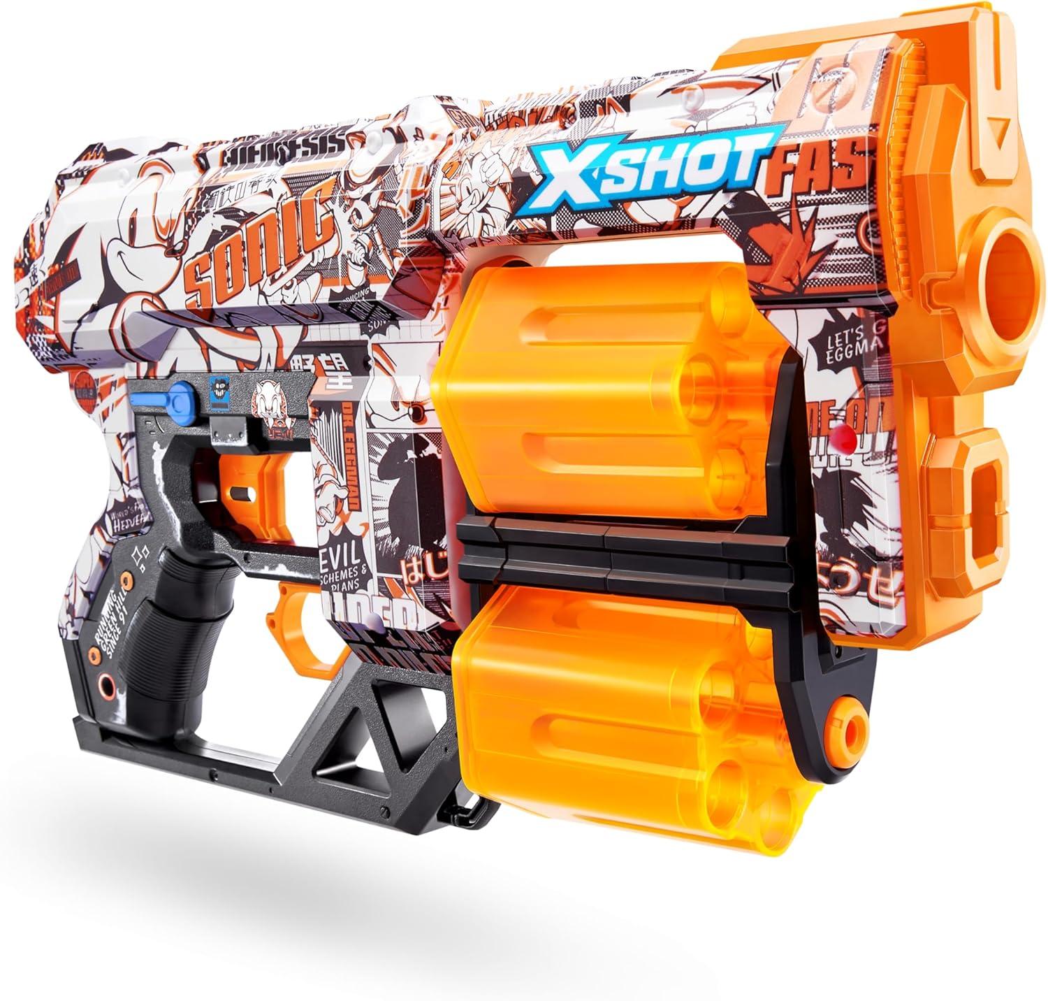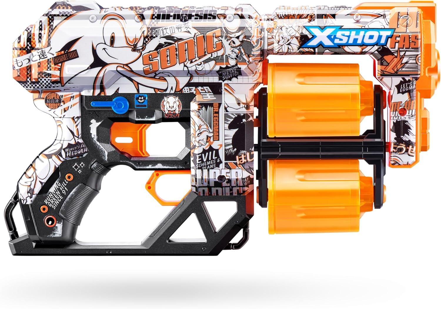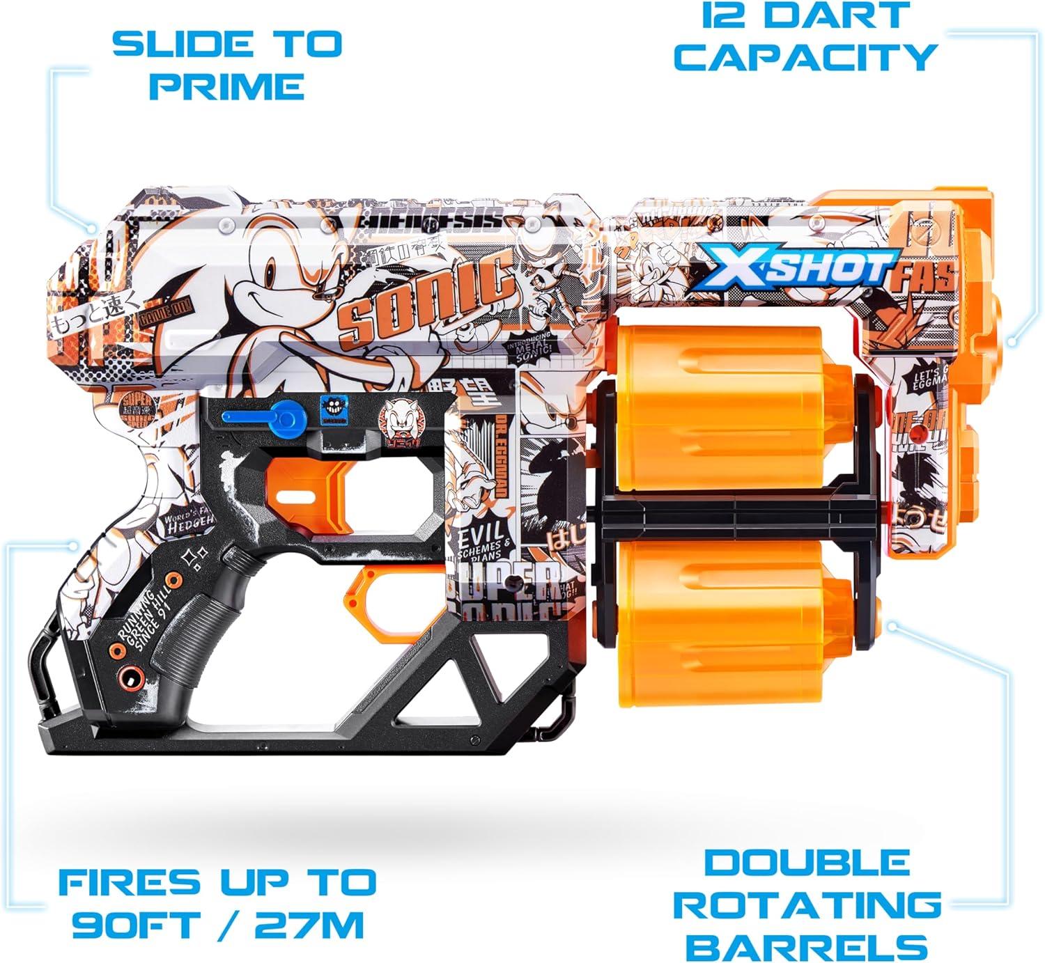 XSHOT Skins Dread Sonic Robotnik Blaster with 24 Darts – Malice Skin by ZURU, Double Rotating Barrels, Air Pocket Dart Technology, Toy Foam Blaster for Kids, Teens and Adults(Race Team)