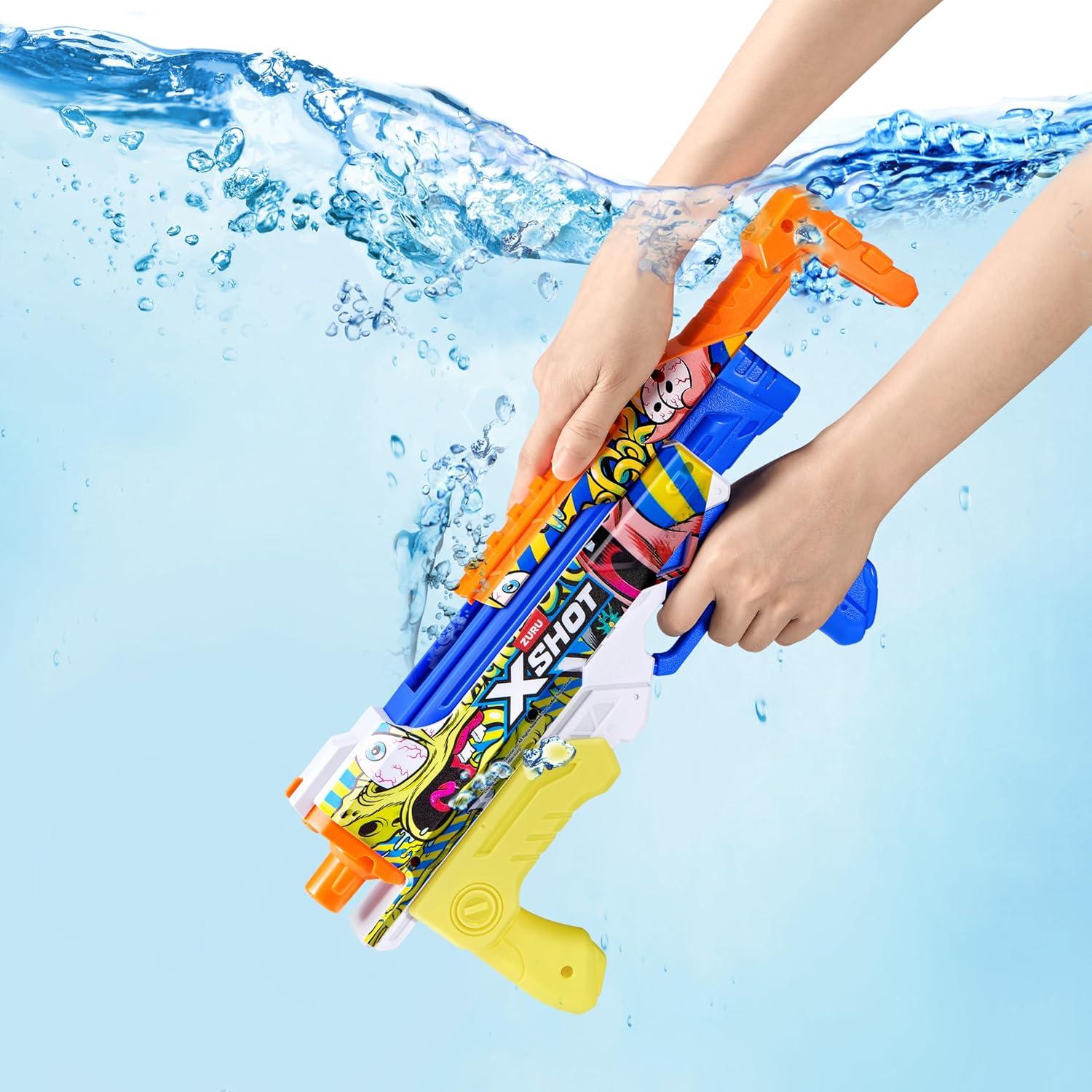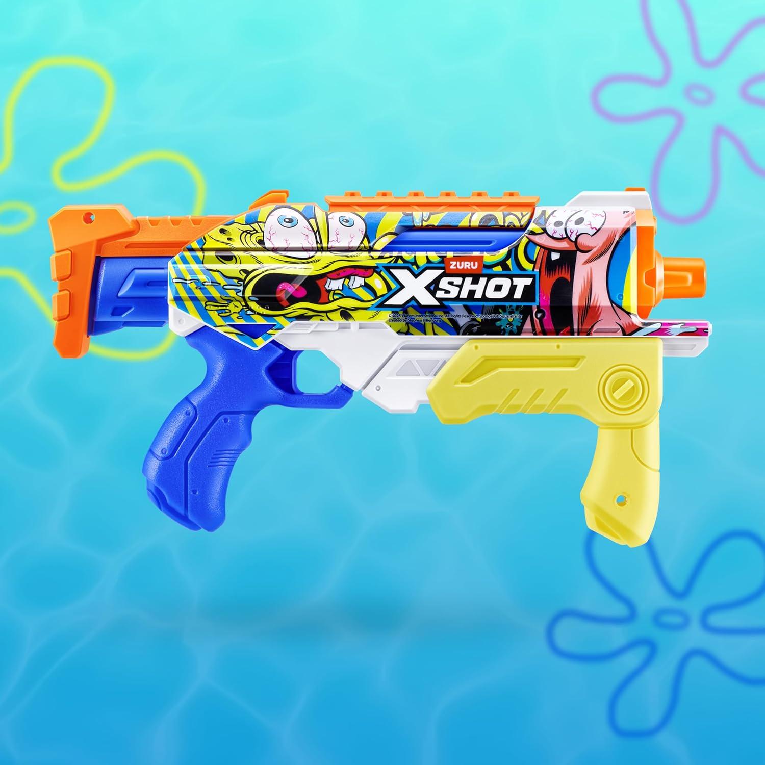 XSHOT Water Spongebob Hyperload Water Blaster (2 Pack) by ZURU – Fast-Fill Water Blaster with Spongebob Design, 33ft Range & 500ml Tank, Outdoor Summer Toy for Kids Ages 5+, Beach & Backyard Fun