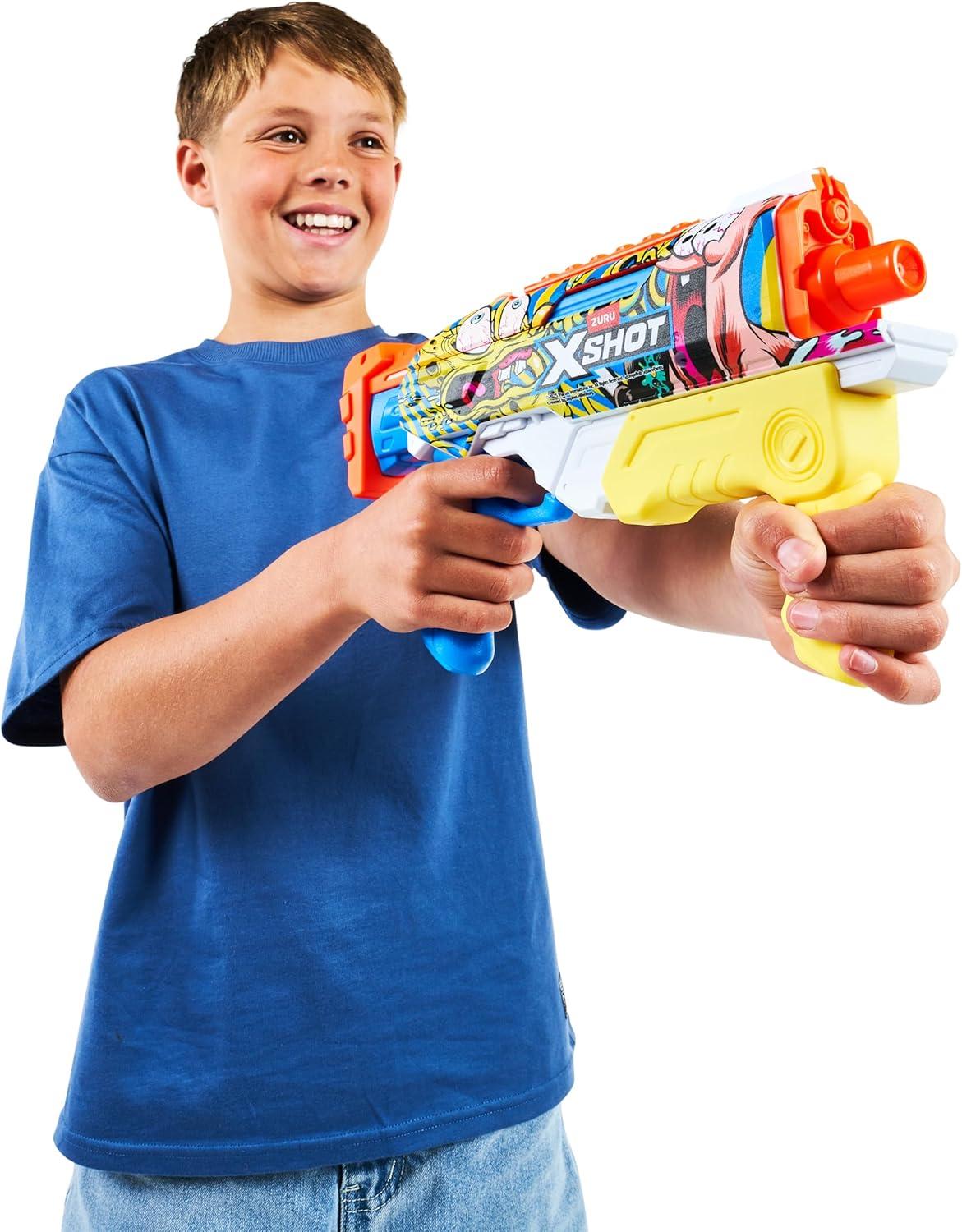 Soak it up Bikini Bottom-style with the XSHOT Water SpongeBob Hyperload Water Blaster by ZURU – the ultimate SpongeBob-themed summer toy for kids, teens, and adults! This high-performance blaster feature XSHOT’s signature Fast-Fill technology, letting you refill in just one second. Simply dunk, fill, and close using the rapid seal design so you can jump back into water battles without missing a beat. The iconic SpongeBob design adds fun character styling, making this blaster a standout in every splash fight. Built for action, it delivers powerful water streams that blast up to 33 feet (10 meters) – perfect for soaking friends at the pool, beach, or in your backyard. Its 500 ml (17 fl oz) water tank means you can play longer without constant refills, and the lightweight design makes it easy for kids ages 5+ to handle. Whether you’re battling alongside friends, hosting an epic SpongeBob-themed party, or just looking for a fun way to cool off, the XSHOT SpongeBob Hyperload Water Blaster by ZURU brings fast refills, big blasts, and endless summer fun. Gear up, aim, and make a splash!